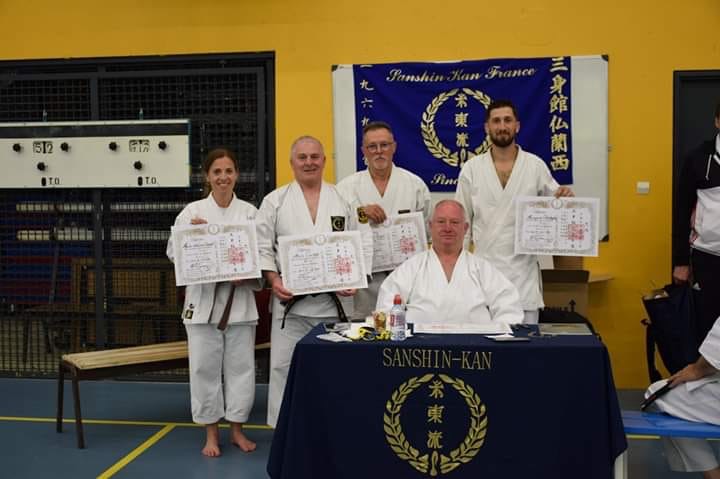 Pour l’ETJC38, ce week-end a été chargé ! Au bout de 5 séances de stages de deux heures chaque, avec Tamas Weber, Roger et Christophe ont eu leur 1er dan de shito ryu et Alain son 6eme ! Toutes nos félicitations à eux !