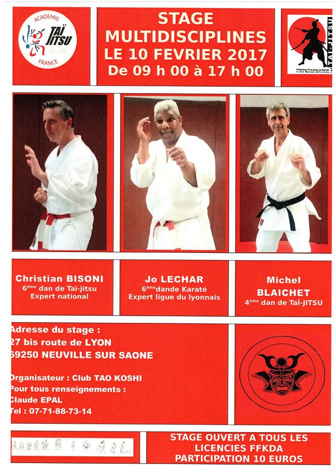 Stage multi-style près de Lyon10 février 2018 dans Stage par Jean-Paul FAURE Carte non disponible Date / Heure Date(s) - 10/02/20189 h 00 min - 17 h 00 min Catégories Stage